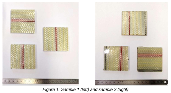 In case of test specimens no. 1 and 3 the electrical voltage caused a normal breakdown through the thickness. In addition, it flowed sideways through the test specimen until it reached the black string (see Figure 2).