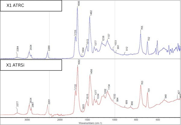 Figure 1: IR spectrum of the sample on crystal ATRC and ATRSi.