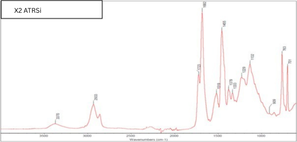 The presence of isocyanates (at 2261 cm-1) was detected in the IR spectrum of sample X1, which is why the sample was dried for another 30 minutes. After drying the sample for 60 minutes, this band was no longer detected in the spectrum (see Figure 2).